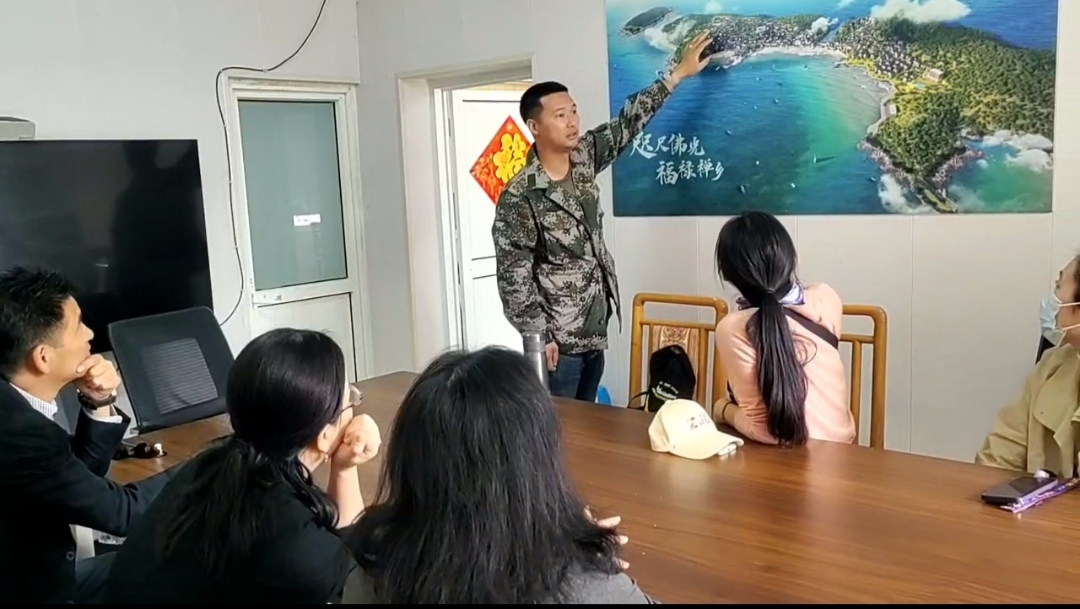 随后,在葫芦岛村支书翁书记的引导下,参观了村里打造的幸福驿站,踏访了村委会。深入了解葫芦岛的分布概况、各地块的前景规划和特色经济的打造蓝图,以及目前岛上的资源禀赋和发展规划愿景,双方共话文旅赋能海岛发展的特色路径,探寻共建的方法举措。