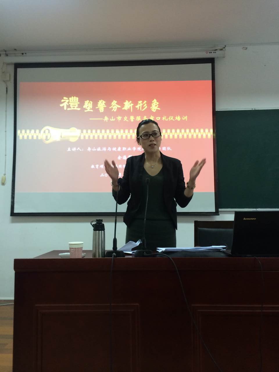 2016年3月19日下午,受舟山市交警队热忱相邀,舟山旅游与健康职业学院礼仪教学团队走进市警察培训学校,为60多名服务窗口交警带去了“