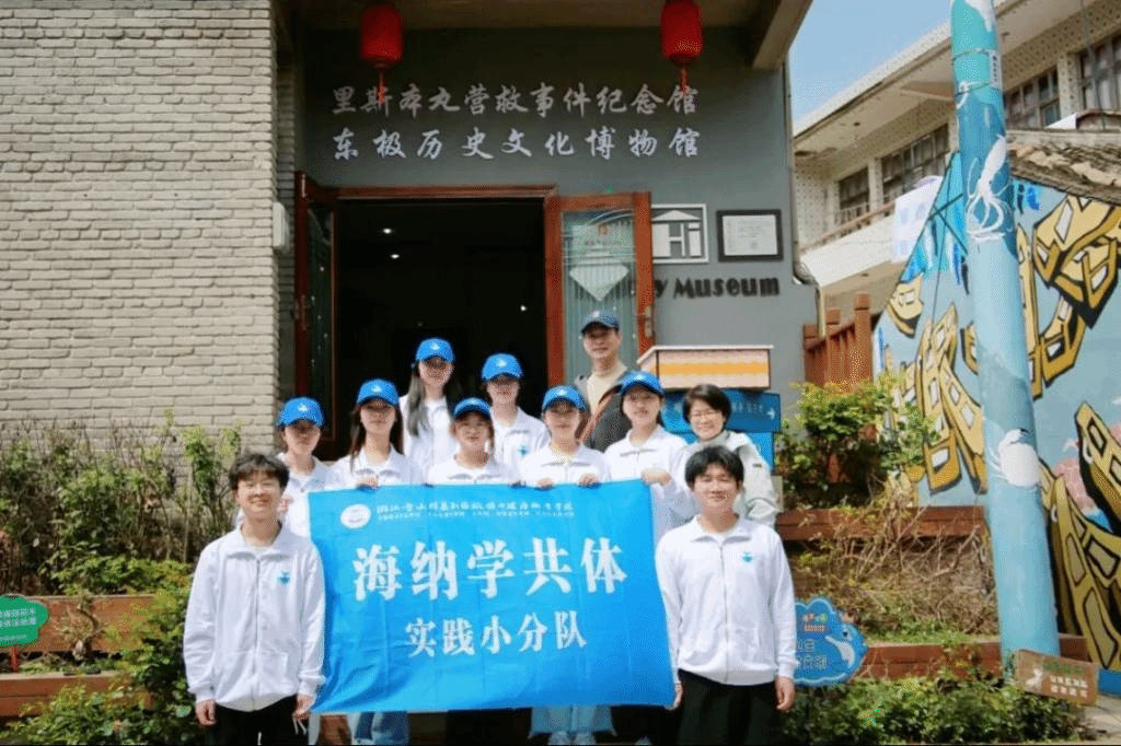 五一实践周期间,“海纳学共体”师生团队前往东极开展调研,师生团队参观了东极历史文化博物馆,并邀请到学共体校外专家——笃行文化的吾旭华老师进行了现场教学。200余件东极渔民旧时生活、生产的用具,20多支渔船模型和“里斯本丸”沉船惊心动魄的历史故事,让大家直观感受到了东极博物馆的厚重、古朴和美好,更感受到东极渔民积极向上勇而无畏的强大生命力量。