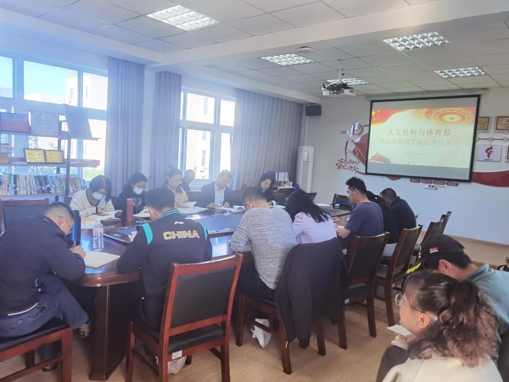 根据学校工作安排,11月22日下午,人文社科与体育部组织全体教职工在志诚楼305开展第20次政治理论集中学习,本次会议由郑将栋老师领学。