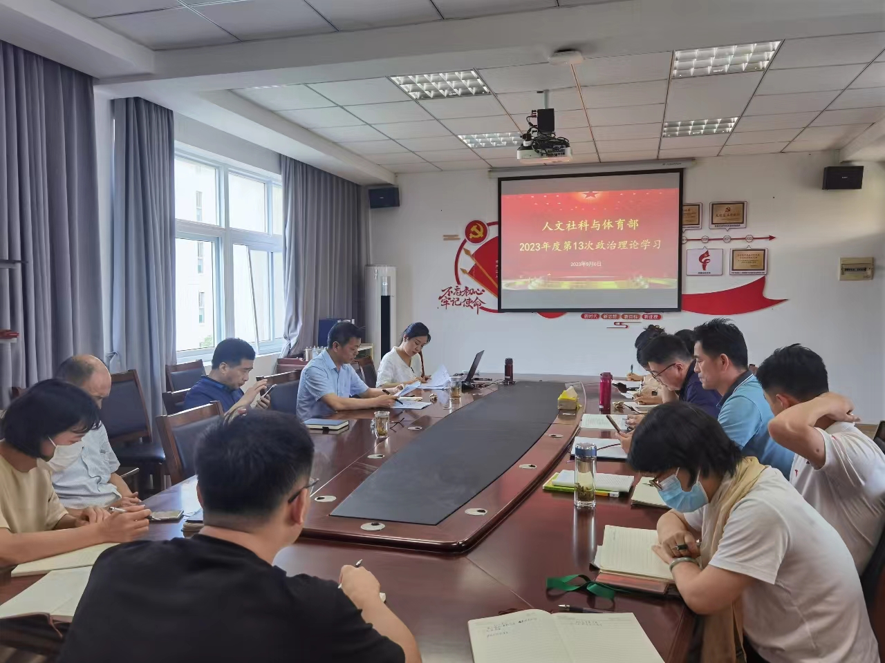 9月6日下午,人文社科与体育部组织全体教职工在志诚楼305开展第13次政治理论集中学习,本次会议由总支书记张毅主持召开,学校党委书记姚奇富参加。