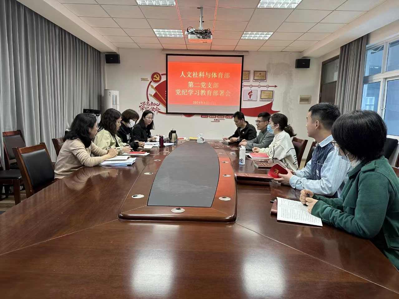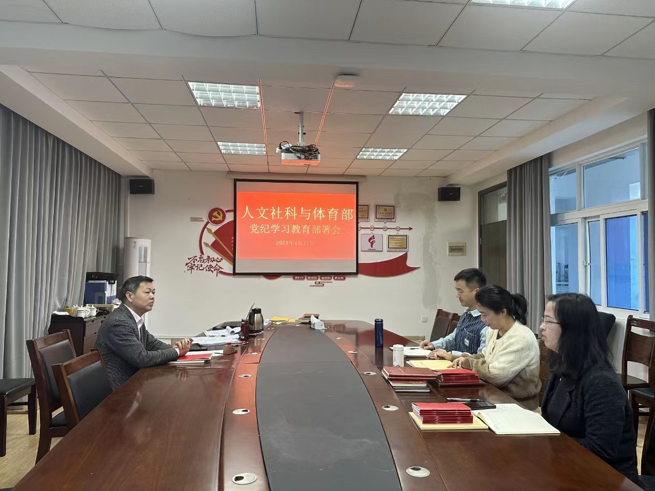 4月17日下午,人文社科与体育部党总支在志诚楼305会议室召开党纪学习教育部署动员会。本次会议由党总支书记张毅主持,总支委员参会。