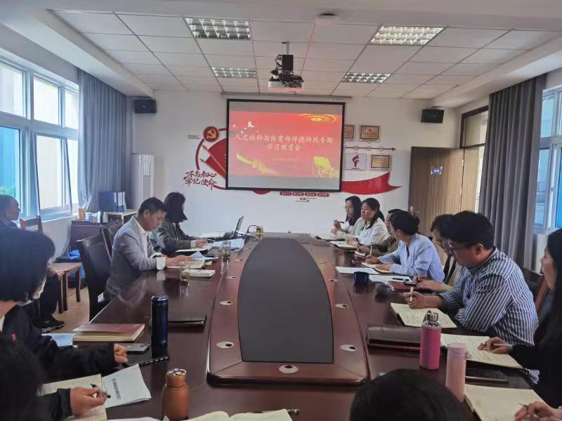为深入贯彻落实《中共中央国务院关于全面深化新时代教师队伍建设改革的意见》、教育部等七部门《关于加强和改进新时代师德师风建设的意见》等文件精神,根据《全省教育系统师德师风问题整治工作实施方案》要求、《全省教育系统师德师风问题整治工作视频会议》及学校《师德师风问题整治工作实施方案》精神,2023年5月10日下午,人文社科与体育部召开师德师风专题学习教育会,会议由张毅主任主持,全体教职工参会。