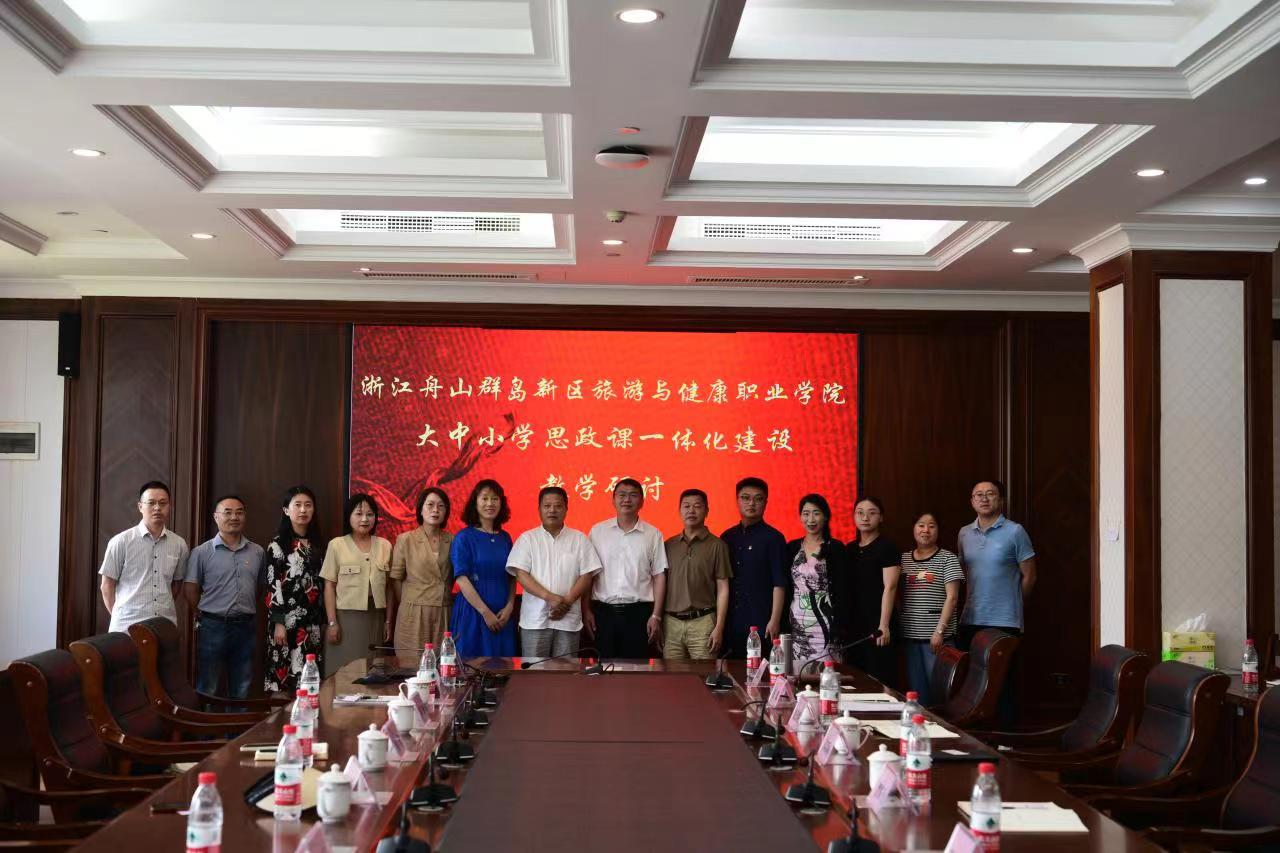 本次研讨活动还邀请了学校属地的朱家尖中学、朱家尖小学和原属地在朱家尖的舟山旅游商贸学校的德育工作分管领导和相关教师代表。会议由人文社科与体育部总支书记、主任张毅主持,部门全体思政教师参会,校党委委员、副校长孔志华出席会议。