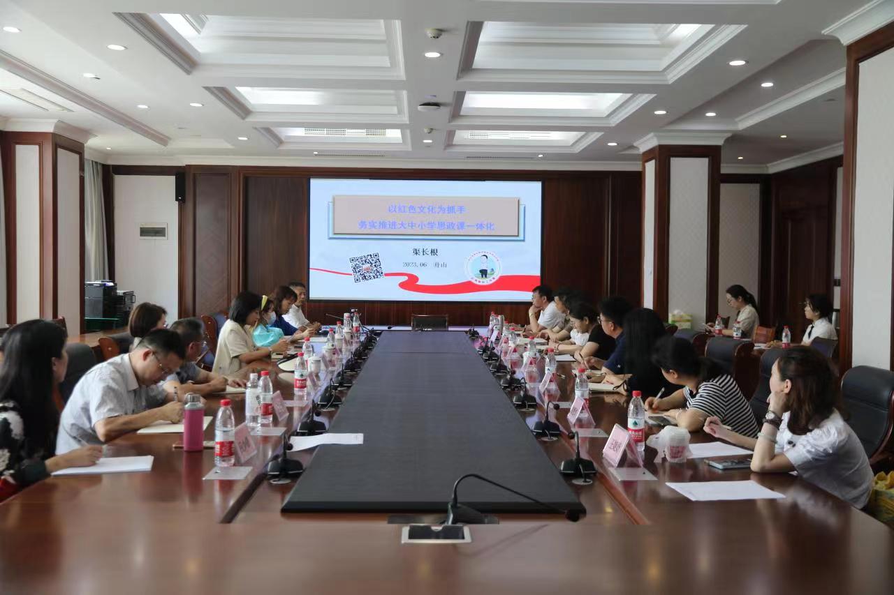 为深入贯彻落实习近平总书记在学校思想政治理论课教师座谈会上的重要讲话精神,推进我校与属地中小学思想政治教育一体化建设,6月14日,我校人文社科与体育部邀请浙江理工大学红色文化研究院院长渠长根教授以“红色文化为抓手,务实推进大中小学思政课一体化建设”的专题研讨。