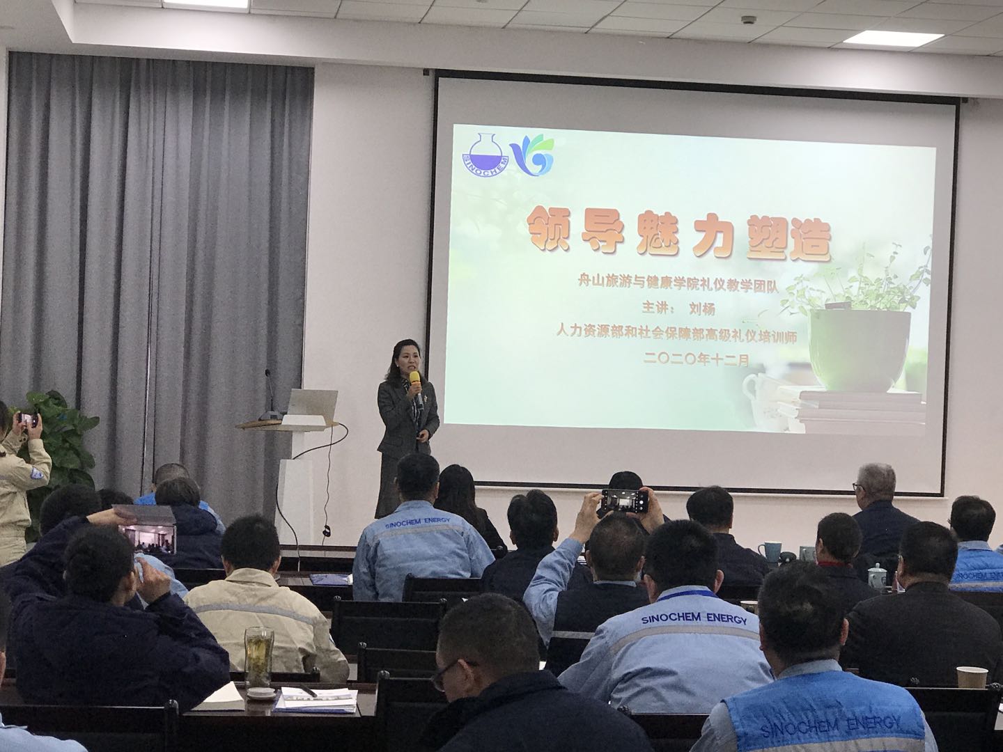 仪式结束后,人文社科与体育部副主任刘杨为中化岙山基地高管及中层开展题为《领导魅力塑造》的专题讲座,标志着此次校企双方合作正式开启。