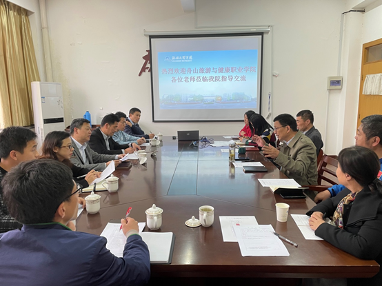 文理学院座谈会上,郑雨尧书记介绍了绍兴文理学院的基本情况、专业设置、未来规划及目标。许诚副主任介绍了绍兴文理学院运动队管理、校内外体育竞赛工作的相关情况。向武云、周赞介绍了公共体育教学及体质测试开展相关情况。最后,双方就学校体育委员会的运作、阳光运动的开展、体测抽测工作等问题进行了深入交流。文理学院为浙江省中华经典诵读大赛承办单位,人文教研室与文理学院语委办陈瑾主任就比赛相关事项进行咨询、对接。