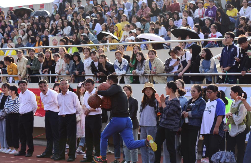 如果说学生运动会是一场青春礼赞,11月2日下午的教职工趣味运动会便是一处欢声笑语的海洋。其内容之精彩多样,让参与者趣味高涨。比赛项目涵括50米迎面抱球接力、穿衣接力、八戒娶媳妇、两人三腿协作跑。最终,第四工会、第六工会斩获第一名,第五工会包揽第三名,第一工会、第七工会获得第四名。闭幕式上,各级领导为上述获奖工会颁奖。