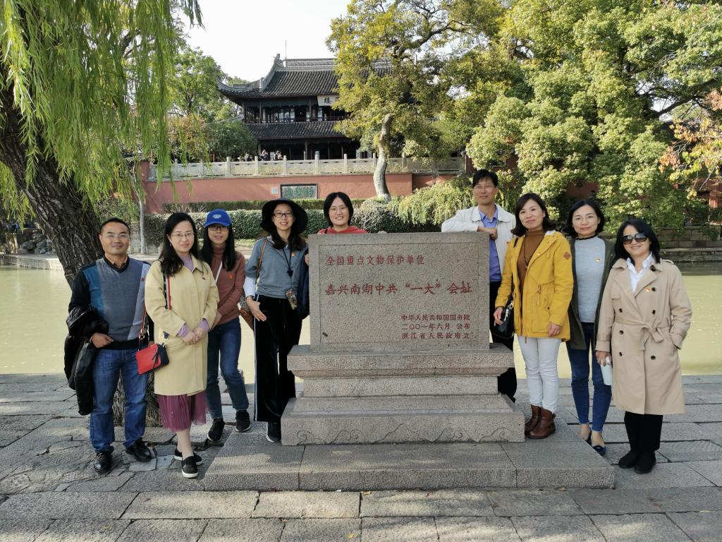 为重温建党历史,追溯红色记忆,进一步推进基层党组织建设,强化党性锤炼,同时丰富“不忘初心、牢记使命”主题教育形式,公共教学部直属党支部在工会陈爱国主席的带领下,于2019年双十一实践周期间赴中国共产党诞生地——嘉兴南湖红船、上海中共一大会址,以及党建工作优秀高校开展“重走建党之路 弘扬建党精神”党建调研。