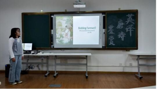 在唐诗的唯美意象及英文的舒缓韵律中,本次“英译唐诗”完满落幕。刘杨老师表示,公共教学部作为基础课程的教学部门,在重视同学们学习基础知识的同时,更应培养学生传承中国传统智慧的意识。以这一理念为活动主线,本学期公共教学部英语、综合、思政和体艺四个教研室分别策划了相关活动,形成了“我为中国智慧代言”系列活动。此次英语口语角活动作为该系列活动的“先行军”之一,为公共教学部后续开展该系列活动打下了坚实的基础。