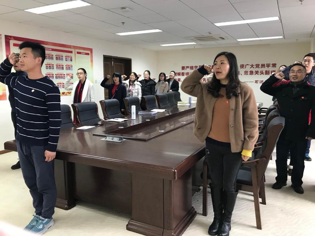 深入贯彻十九大精神,进一步落实南湖红船精神现场教育会讲话和2018年全校工作会议精神,引导广大党员增强党性意识,公共教学部直属党支部37开展了“重温入党誓词 牢记入党使命”的主题活动。在支部书记刘杨同志带领下,由青年党员代表郑将栋同志领誓,支部全体党员面对鲜红的党旗,重温入党誓词,庄严宣誓,再一次接受党性洗礼。