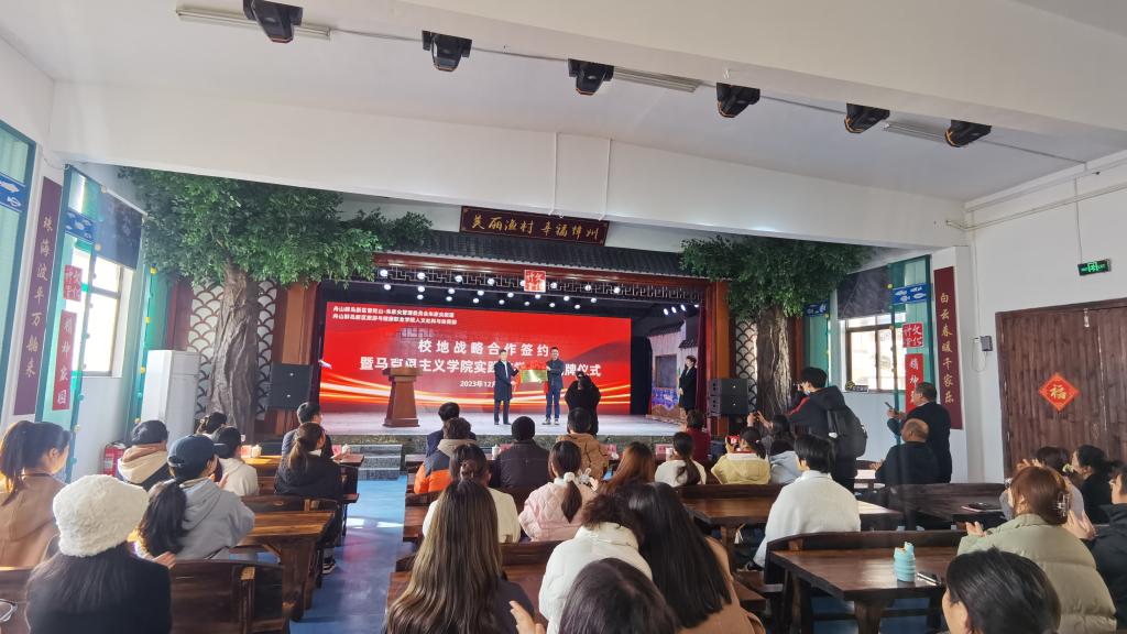当天活动主要包括校地战略合作签约、马克思主义学院实践教学基地揭牌、现场教学三个环节。仪式开始,赵正豪部长、张毅主任分别代表合作双方进行了热情洋溢的致辞。在双方领导的见证下,朱家尖街道和思政教研室相关同志共同签署校地合作协议。赵正豪部长、张毅主任共同为樟州村实践教学基地揭牌。仪式结束后,全体师生代表在讲解员带领下参观了乡村博物馆和文化走廊,实地感悟樟州特色的海洋文化。今后,双方将以这次合作共建为契机,携手同行,落实好协议相关内容,促进共同发展!